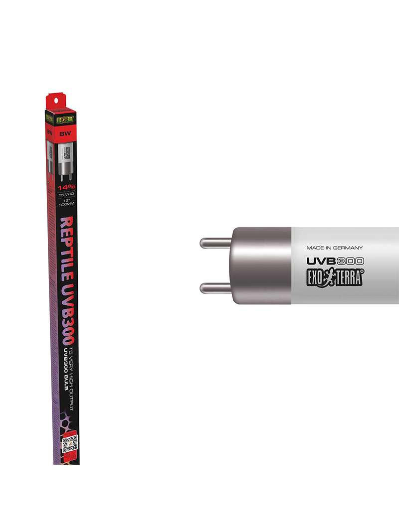 DŮLEŽITÉ: Vzhledem k vysoké intenzitě UV je nutné správně umístit trubicovou zářivku UVB vůči výhřevné zóně, aby nedošlo k nadměrné expozici. V kombinaci s bodovým vytápěním a vhodnými teplotními gradienty vytváří UVB PRO 300 kompletní prostředí, které podporuje zdraví a přirozené chování pouštních plazů.