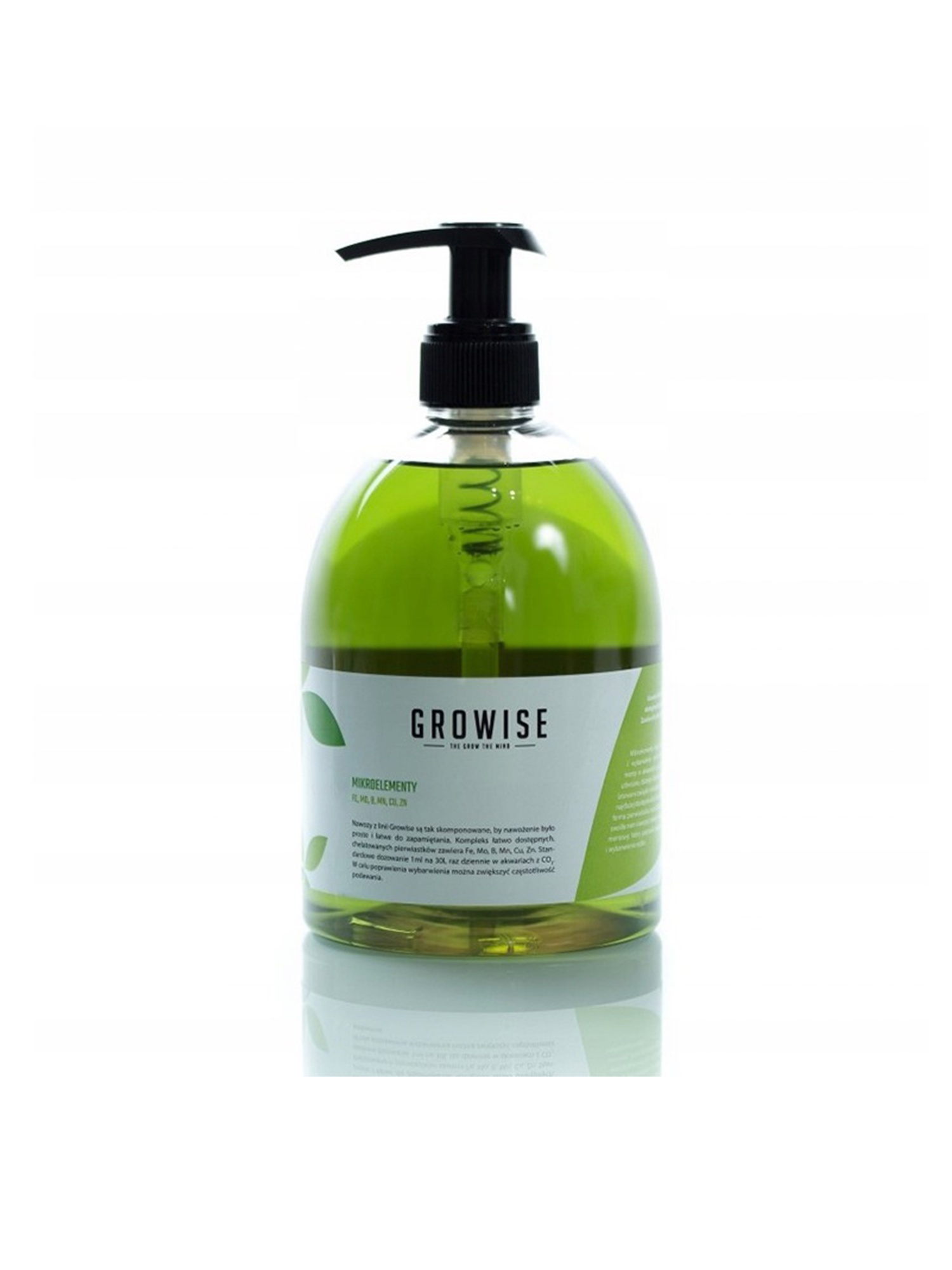 Řada hnojiv Growise je navržena tak, aby hnojení bylo jednoduché a snadno zapamatovatelné. Komplex snadno dostupných, chelátovaných prvků obsahuje Fe, Mo, B, Mn, Cu, Zn. Standardní dávkování 1 ml na 30 l jednou denně v akváriích s CO2 v postřikovacím systému pro terária 1 až 5 ml na 30 l RO vody. Pro zlepšení vybarvení akvária lze frekvenci dávkování zvýšit.