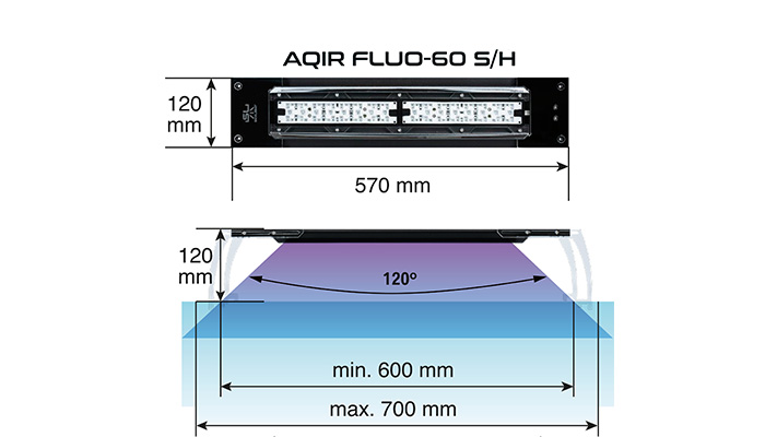 Osvětlení mořských akvárií Skylight AQIR je určeno pro malá až středně velká akvária (35-90 cm široká). Fialovo-červené spektrum umožňuje pěstování náročných druhů korálů (včetně SPS). Lampy AQIR jsou navíc navrženy tak, aby zvýraznily intenzivní a živé barvy útesových živočichů. Programování denního světla se provádí pomocí přiloženého regulátoru.