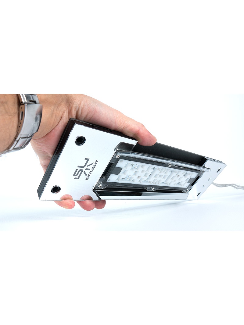 Osvětlení mořských akvárií Skylight AQIR je určeno pro malá až středně velká akvária (35-90 cm široká). Fialovo-červené spektrum umožňuje pěstování náročných druhů korálů (včetně SPS). Lampy AQIR jsou navíc navrženy tak, aby zvýraznily intenzivní a živé barvy útesových živočichů. Programování denního světla se provádí pomocí přiloženého regulátoru.