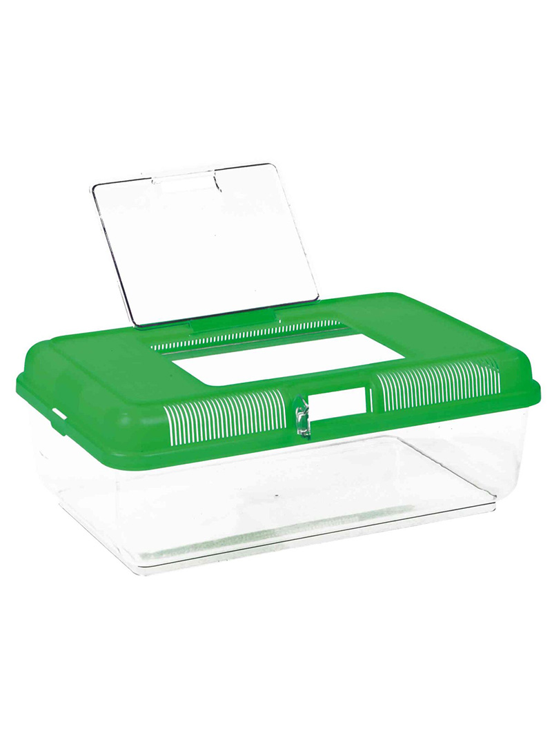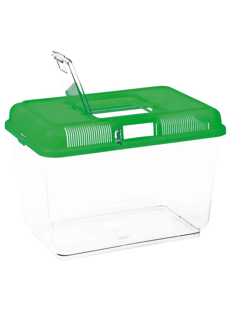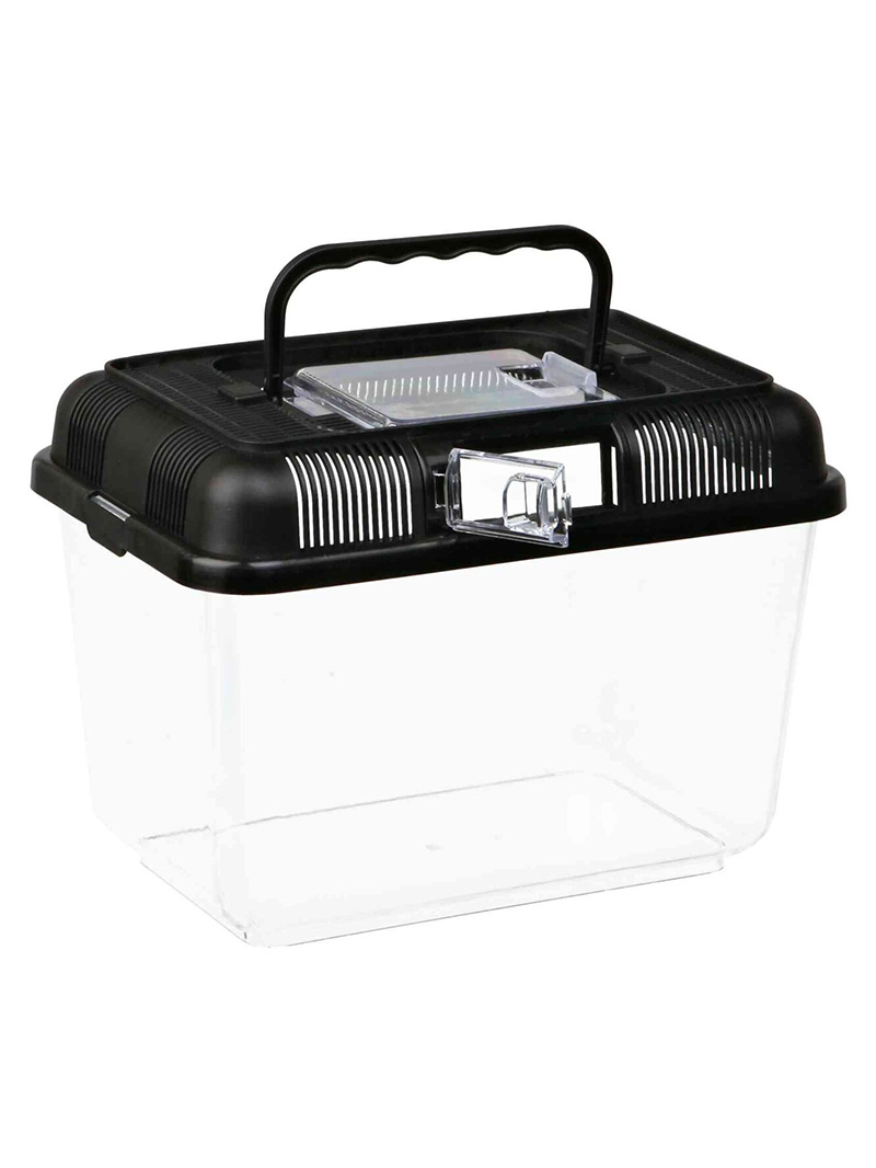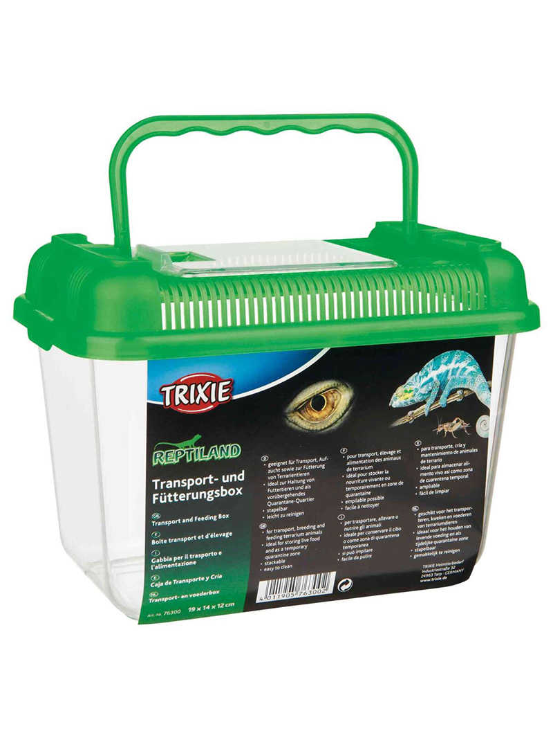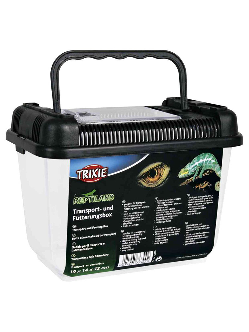 Trixie – Transportér / Faunárium je určeno k přepravě i chovu malých exotických zvířat, jako je hmyz, pavoukovci, malí plazi nebo obojživelníci. Je také ideální pro skladování živého krmiva a jako karanténní prostor. Je vyrobena z plastu, díky čemuž se snadno čistí a udržuje vysoká úroveň hygieny. Má odnímatelné, dobře větrané víko, které zajišťuje intenzivní výměnu vzduchu v nádobě, což minimalizuje riziko respiračních onemocnění. Víko má pohodlné držadlo pro přenášení a otvor pro krmení (2 největší modely nemají držadlo). Faunárium Trixie je vybaveno přídavnými dvířky na straně odnímatelného víka (neplatí pro nejmenší model). Přídavná dvířka umožňují krmení zvířat, i když jsou nádoby naskládány na sebe.