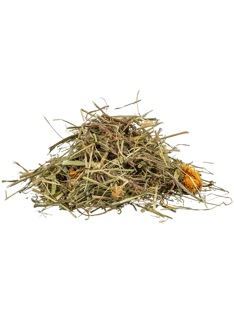 Zutaten: Grünhafer, Wiesengräser und -kräuter, Petersilienstängel, Dillstängel, Rosmarin, Oregano, Brennnessel, Löwenzahn, Fenchel, Samtblatt
