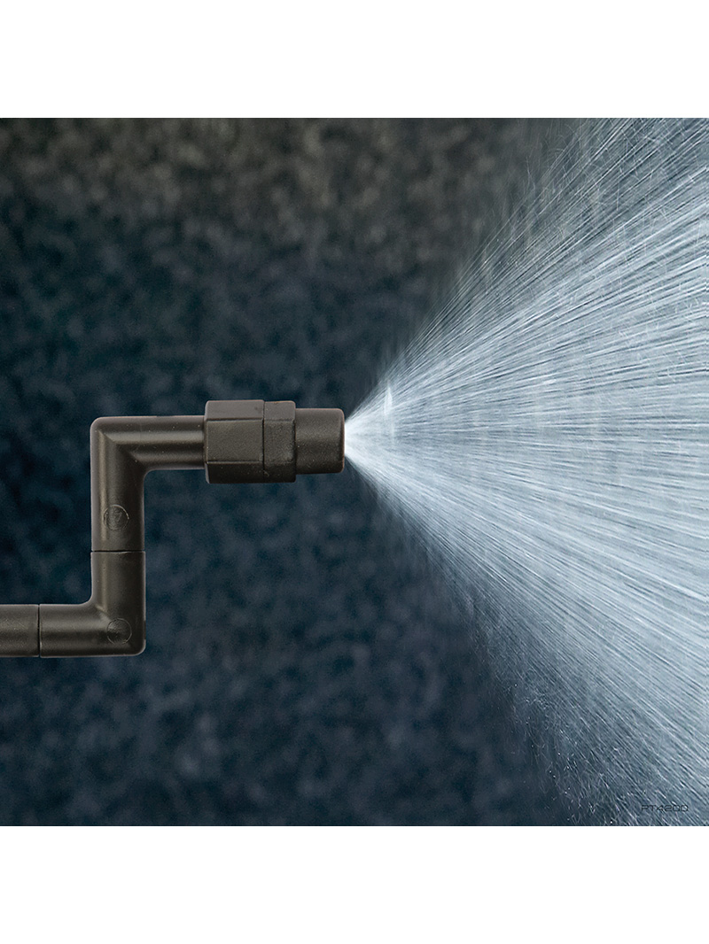 Gli ugelli in dotazione creano una nebbia di goccioline finissime, che innaffia uniformemente tutto l’interno del terrario senza irritare gli abitanti. La nebulizzazione frequente ha un effetto positivo sulle piante epifite, come orchidee e bromelie. Simula inoltre una stagione umida, che ha un effetto positivo sul benessere di molte specie animali e le stimola a riprodursi. Il sistema di irrigazione funziona bene non solo nei terrari tropicali ma anche in quelli desertici, consentendo di simulare l’effetto nebbia mattutina. Il mantenimento di un’adeguata umidità nella vasca svolge un ruolo fondamentale nel processo di muta e previene i problemi respiratori.