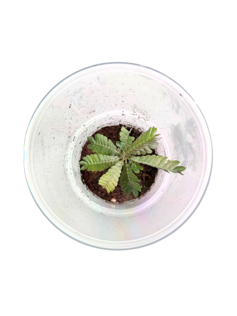 Biophytum sp. ‘Ecuador’ is a miniature terrarium plant with the habit of a tiny palm, forming a dense rosette of slender petioles topped with feathery leaves. In a well designed terrarium it looks like a small tree that immediately draws the eye to the foreground of the layout. Its delicate structure, compact size and unusual growth form make it perfect for micro terrariums, vivariums with amphibians and “jungle floor” style displays.