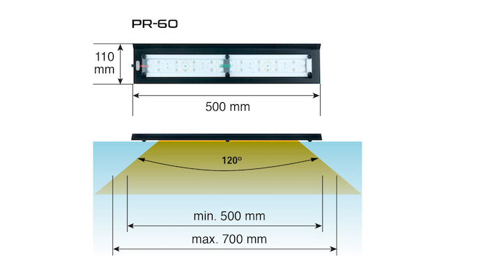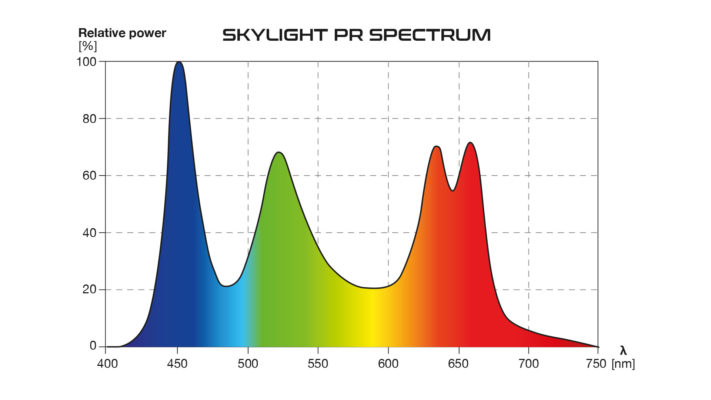 The SKYLIGHT PR-40, PR-60 and PR-80 lamps were designed in a different way, than majority of vivarium/terrarium dedicated lighting products. Terrarium lamps are usually oriented around high brightness. In some more advanced products brightness is somewhat compromised for high colour rendering index (CRI). In PR-40, PR-60 and PR-80 lamps both mentioned above parameters are compromised to achieve vivid intense colours. Large portion of deep red light in the spectrum triggers phytochromes of plants to produce colourful protective pigments, while RGB based spectrum of the lamp allows the user to see his planted terrarium with deeper, more intense coloration. Additionally glaring has been brought to the minimum in this product making looking on your vivarium a pure pleasure!