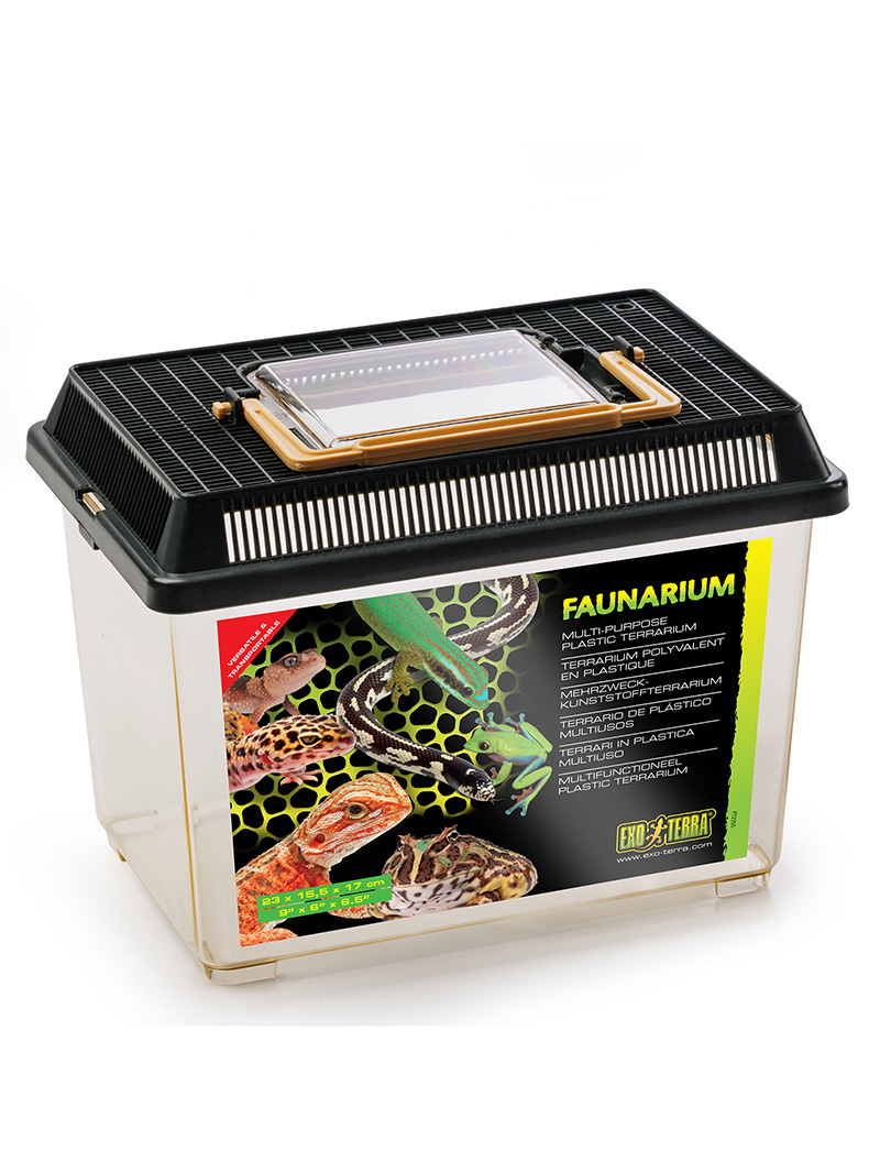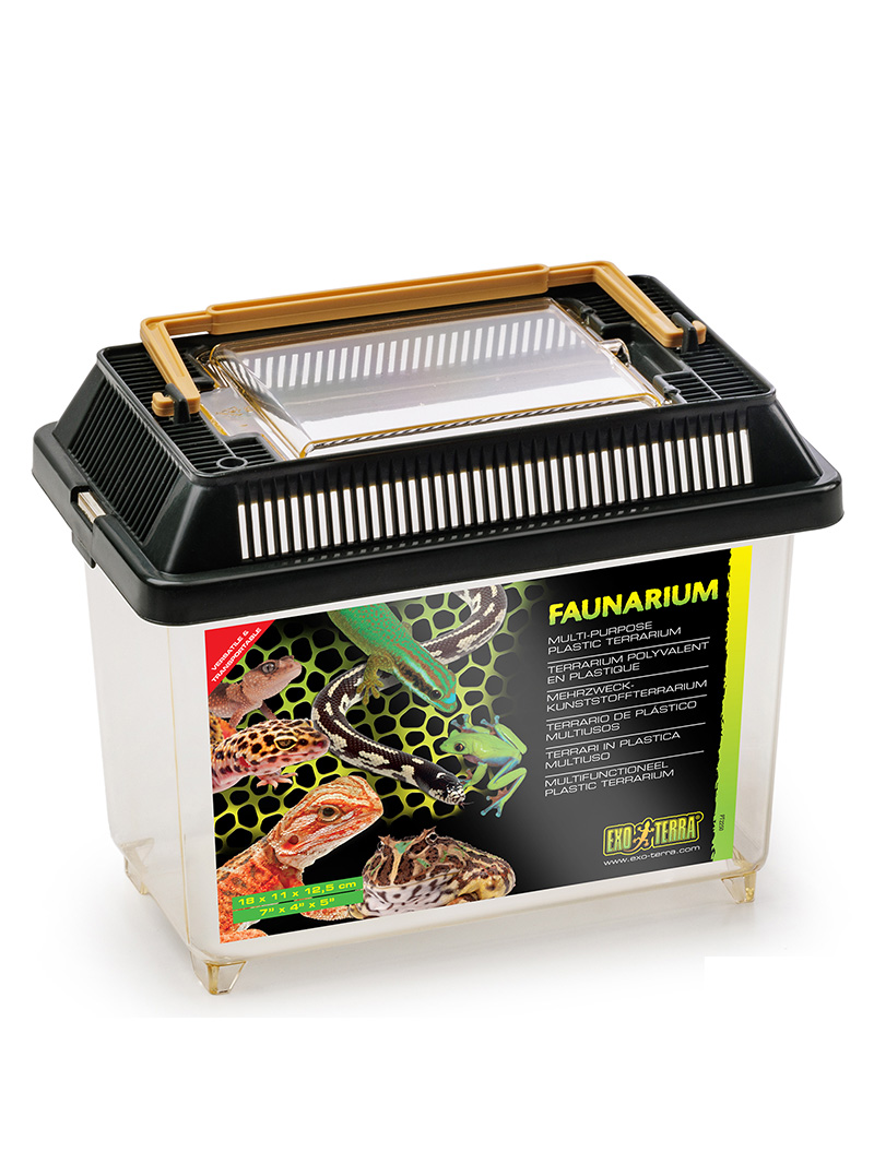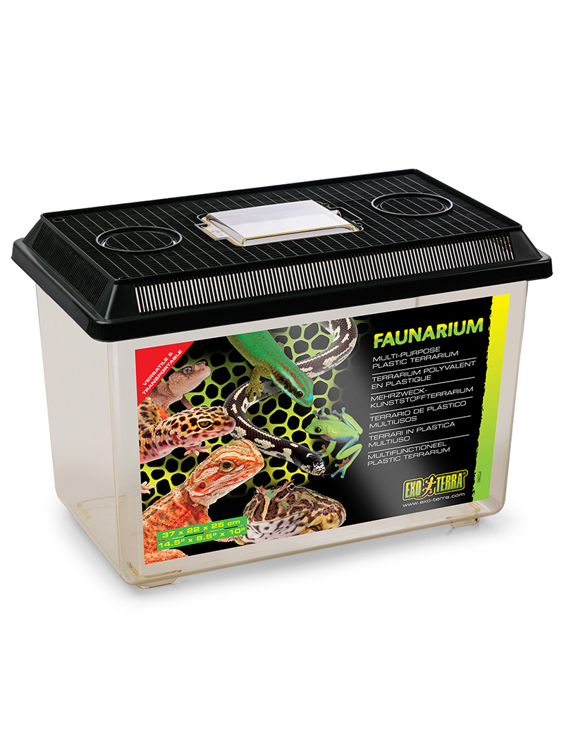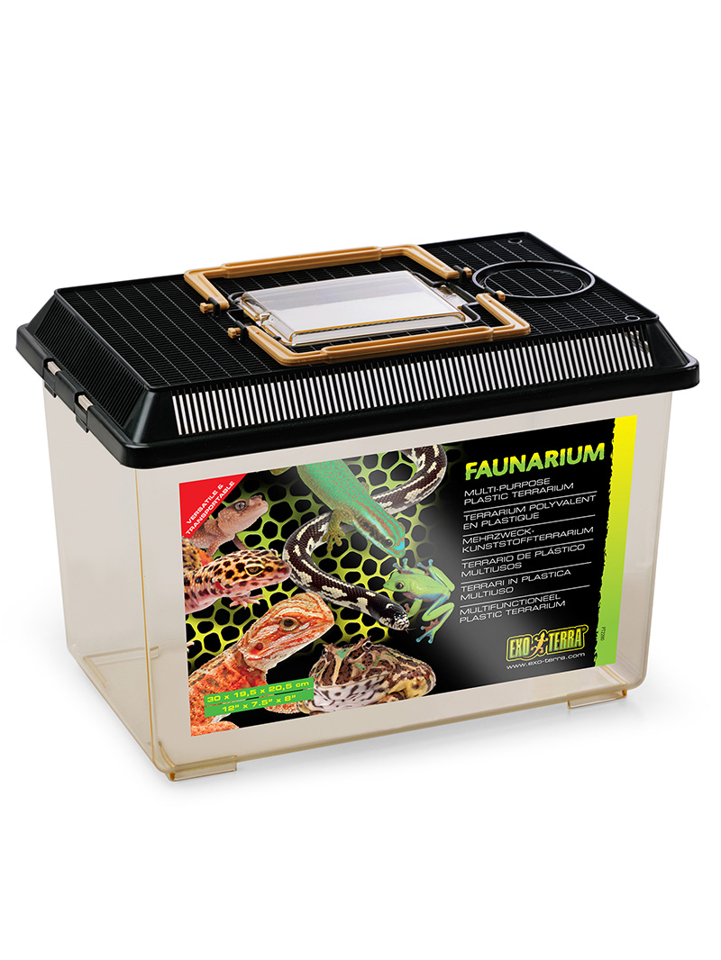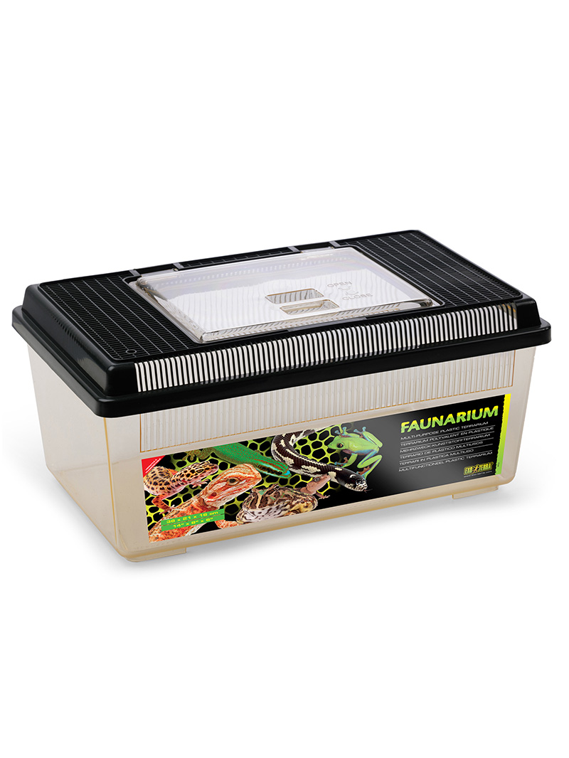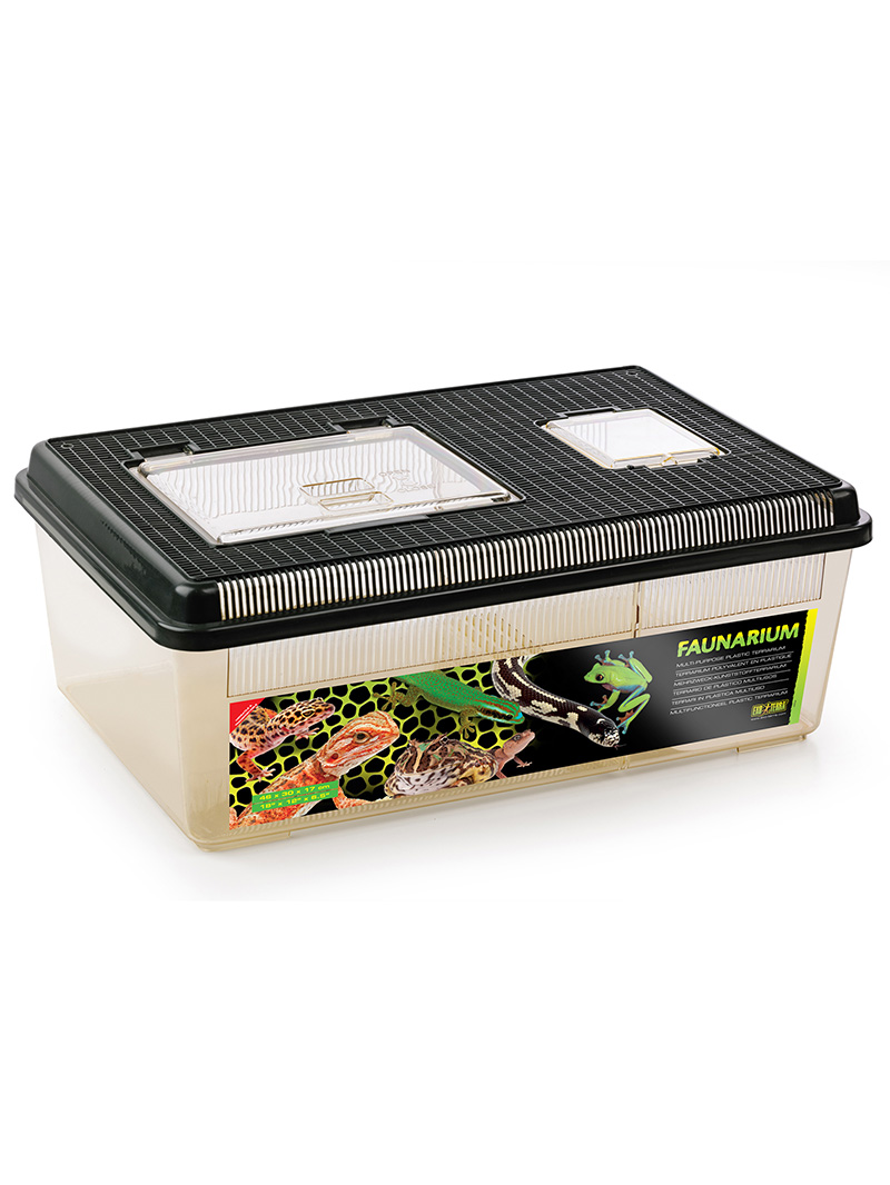 Faunárium Exo Terra sa ľahko používa a je ideálne na trvalé alebo dočasné umiestnenie mladých plazov, obojživelníkov a bezstavovcov. Výborne sa hodí aj ako nádoba na chov kŕmnych zvierat. Bočné vetracie otvory zabezpečujú optimálnu cirkuláciu vzduchu a veľké priehľadné dvierka umožňujú ľahký prístup na kŕmenie alebo čistenie.