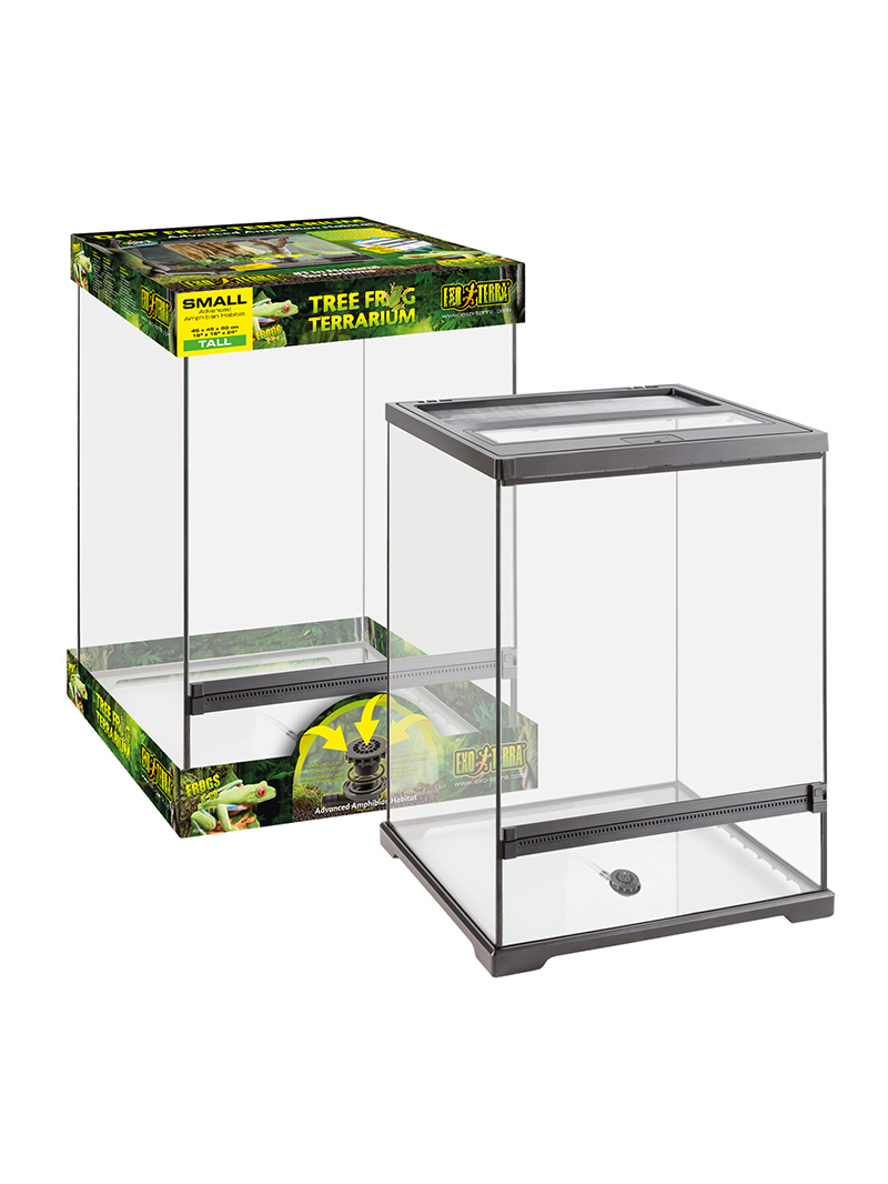 Terárium pre žaby a iné malé exotické zvieratá. Veľmi pohodlné používanie, odolný a estetický dizajn. Je vybavené integrovaným odtokovým systémom na prebytočnú vodu a otváracím vekom. Kompatibilné s mnohými špecializovanými doplnkami vrátane zavlažovacieho systému Exo Terra Monsoon.